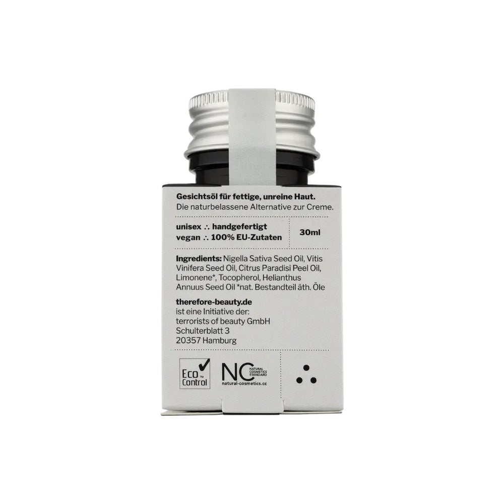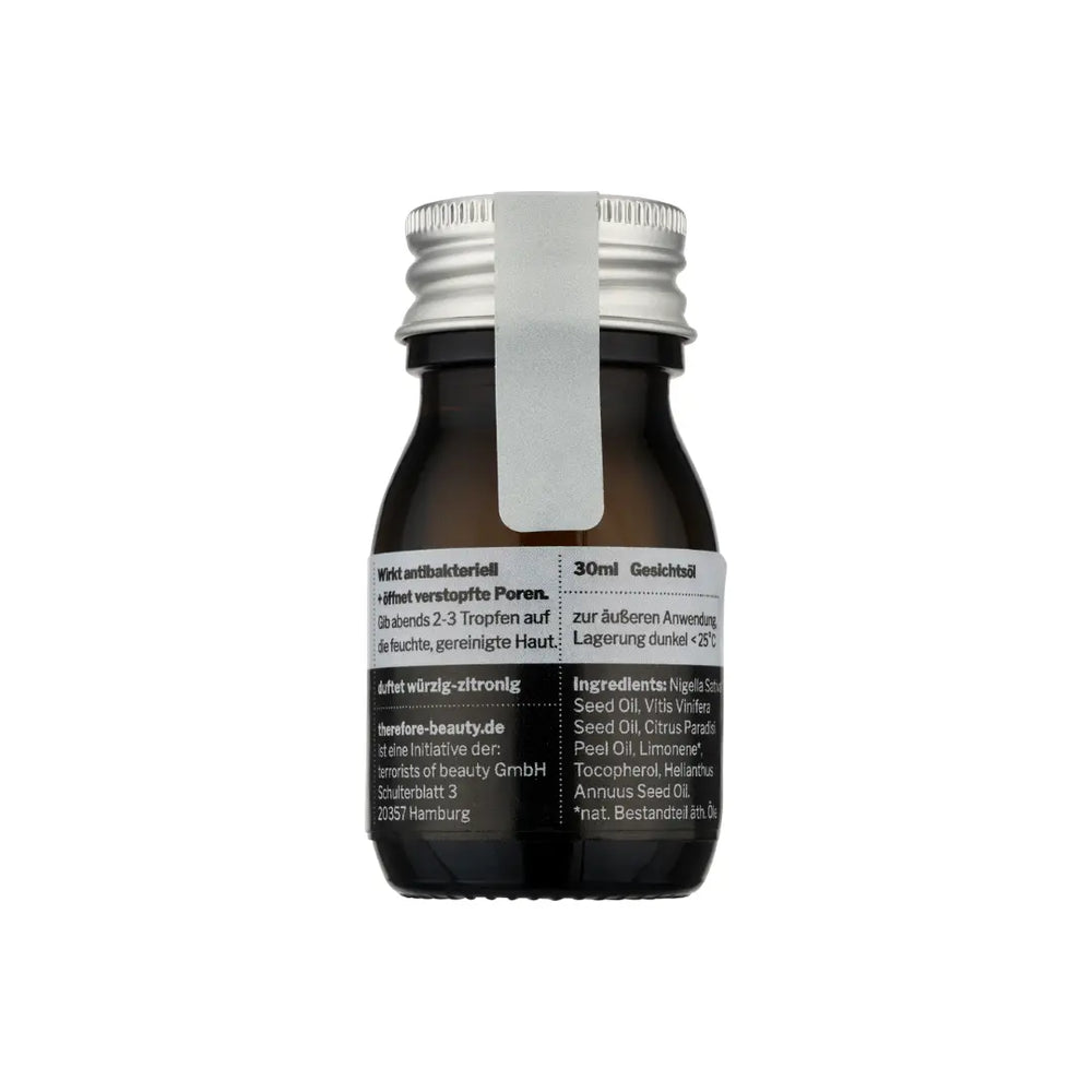 therefore - balm 001 - Gesichtsöl mit Schwarzkümmelöl gegen Pickel + Akne - 30 ml