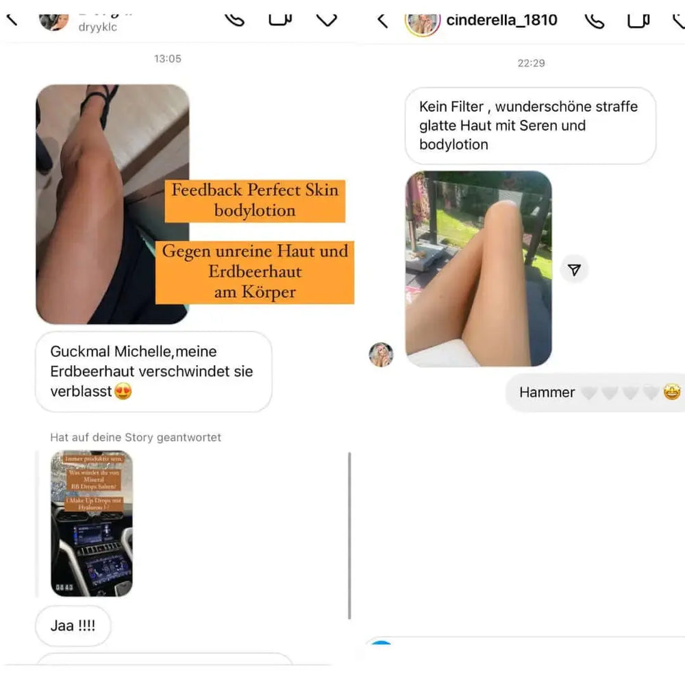 Die Perfect Skin Bodylotion bietet höchstdosierte Salicylsäure für eine feuchtigkeitsspendende, seidige und peelende Wirkung. Unreinheiten und verstopfte Poren an Armen, Beinen, Dekolleté und Rücken werden wirksam bekämpft. Es darf direkt nach der Rasur aufgetragen werden, um Rasierpickelchen vorzubeugen. Die regelmäßige Anwendung führt zu reinerer, geschmeidigerer und strahlenderer Haut mit einem jugendlichen Aussehen. Mit einem wunderschönen Goldschimmer für einen perfekten, glanzvollen Auftritt. Byebye Erdbeerhaut und Reibeisenhaut!