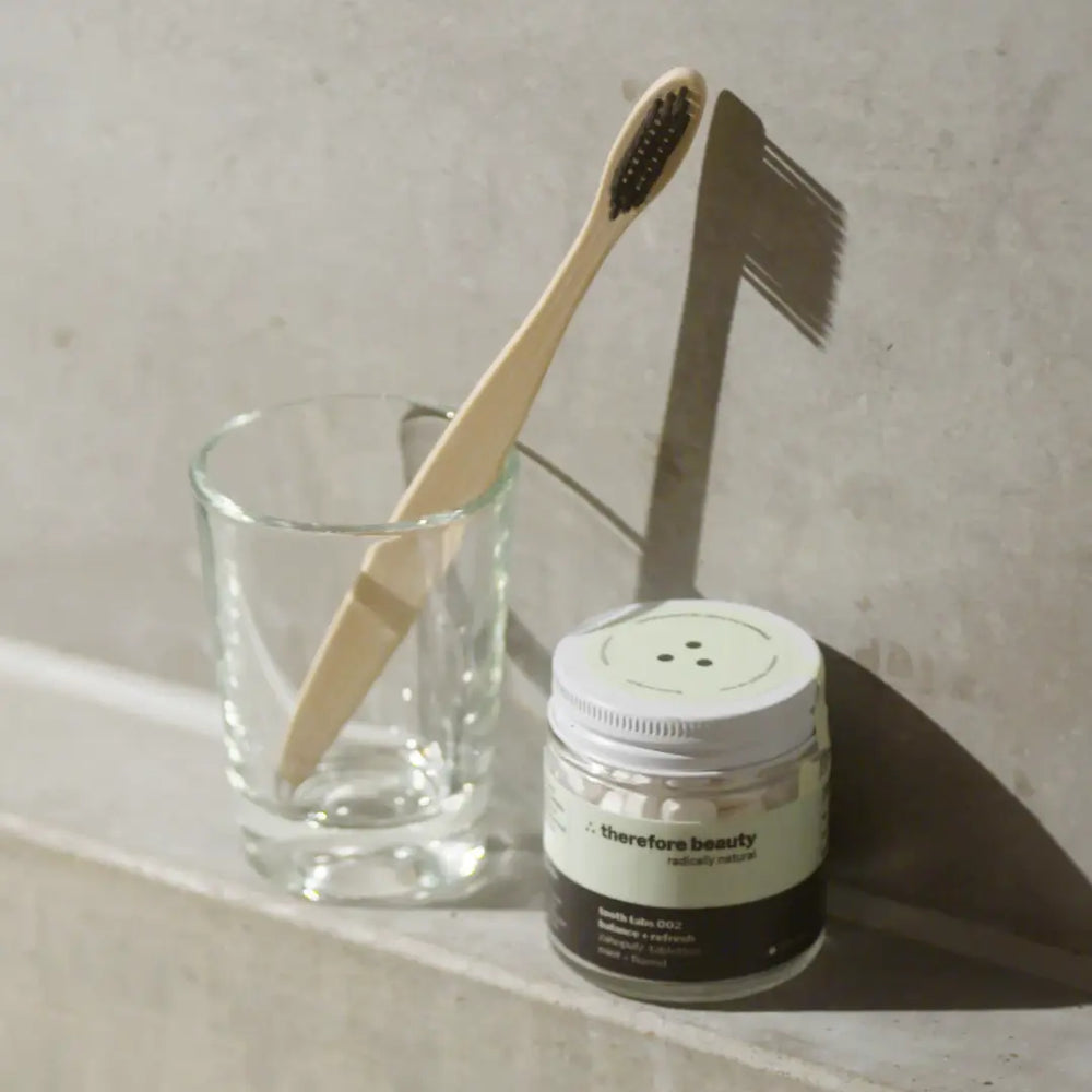 Zahnputztabletten ∴ plastikfrei ∴ parabenfrei ∴ vegan ∴ glutenfrei ∴ palmölfrei ∴ ohne SLS ∴ sulfatfrei